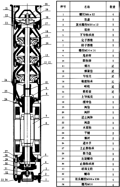 7. 潛水電泵每運轉一年,或運轉不滿一年但潛水時間已達兩年的,應從井中提出并按第5條進行拆開檢修,更換已磨損的零件。